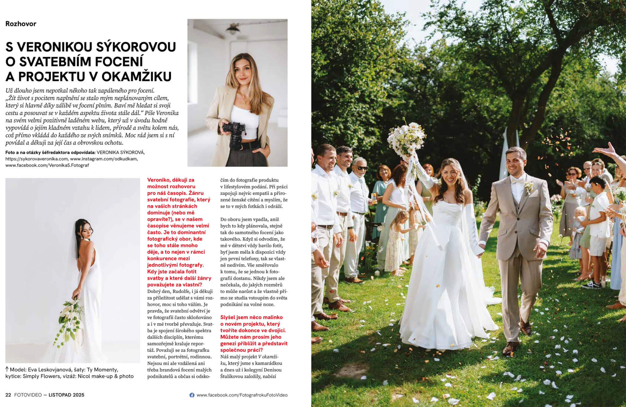 Novembrové číslo časopisu FotoVideo opäť pôsobí vyzreto. Redakcia stavia na osvedčenom mixe výrazných osobností, silných fotografických príbehoch, testoch novej techniky či návodoch ako na to. Čitateľ tu nájde veľké mená, veľké výstavy, rozhovory s fotografmi, ktorí vedia pútavo rozprávať, a tiež veľmi aktuálne témy ako AI, obsahová tvorba či aktuálne trendy vo svadobnej fotografii. A práve svadobná téma je zastúpená Nikon fotografkou Veronikou Sýkorovou.