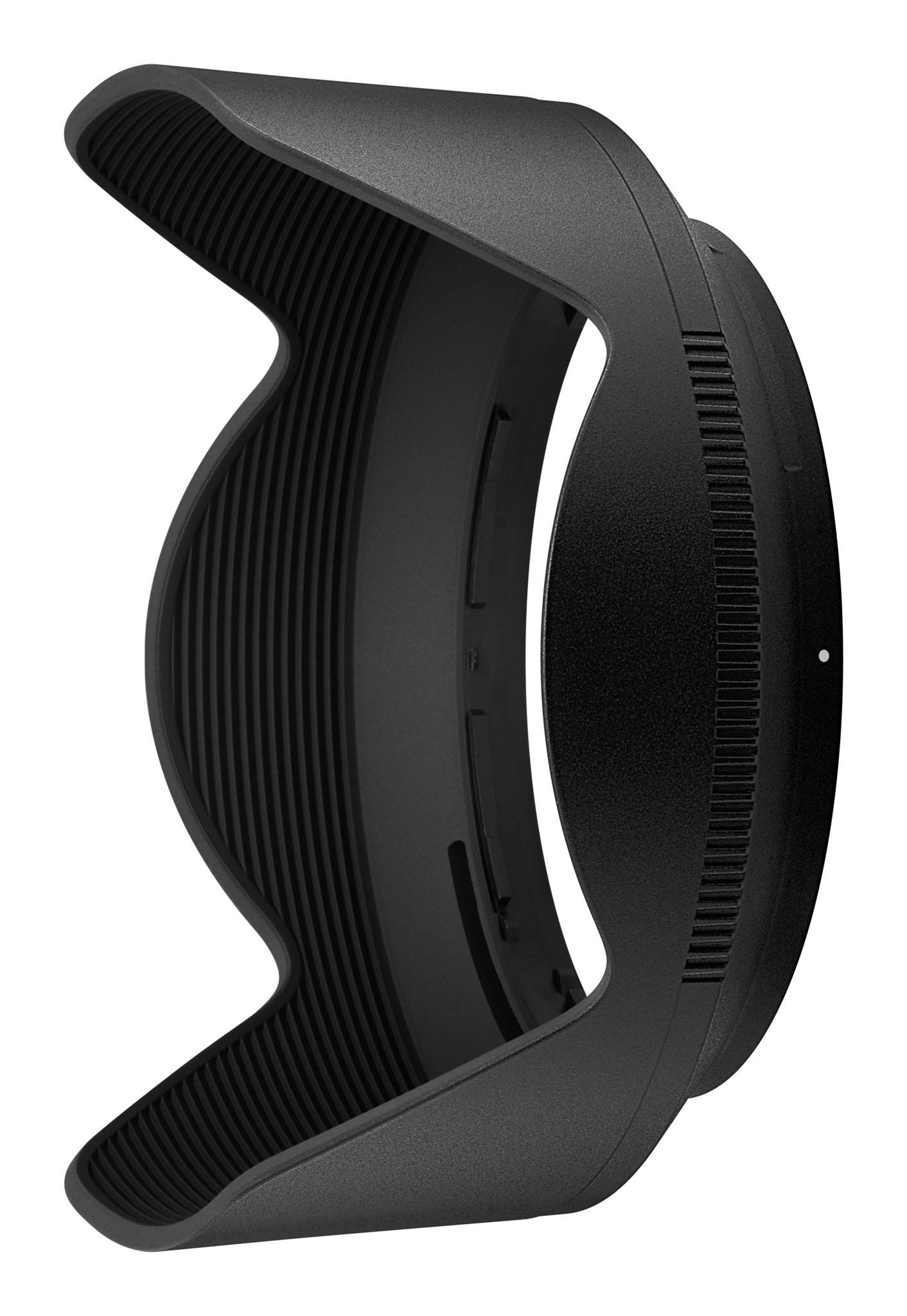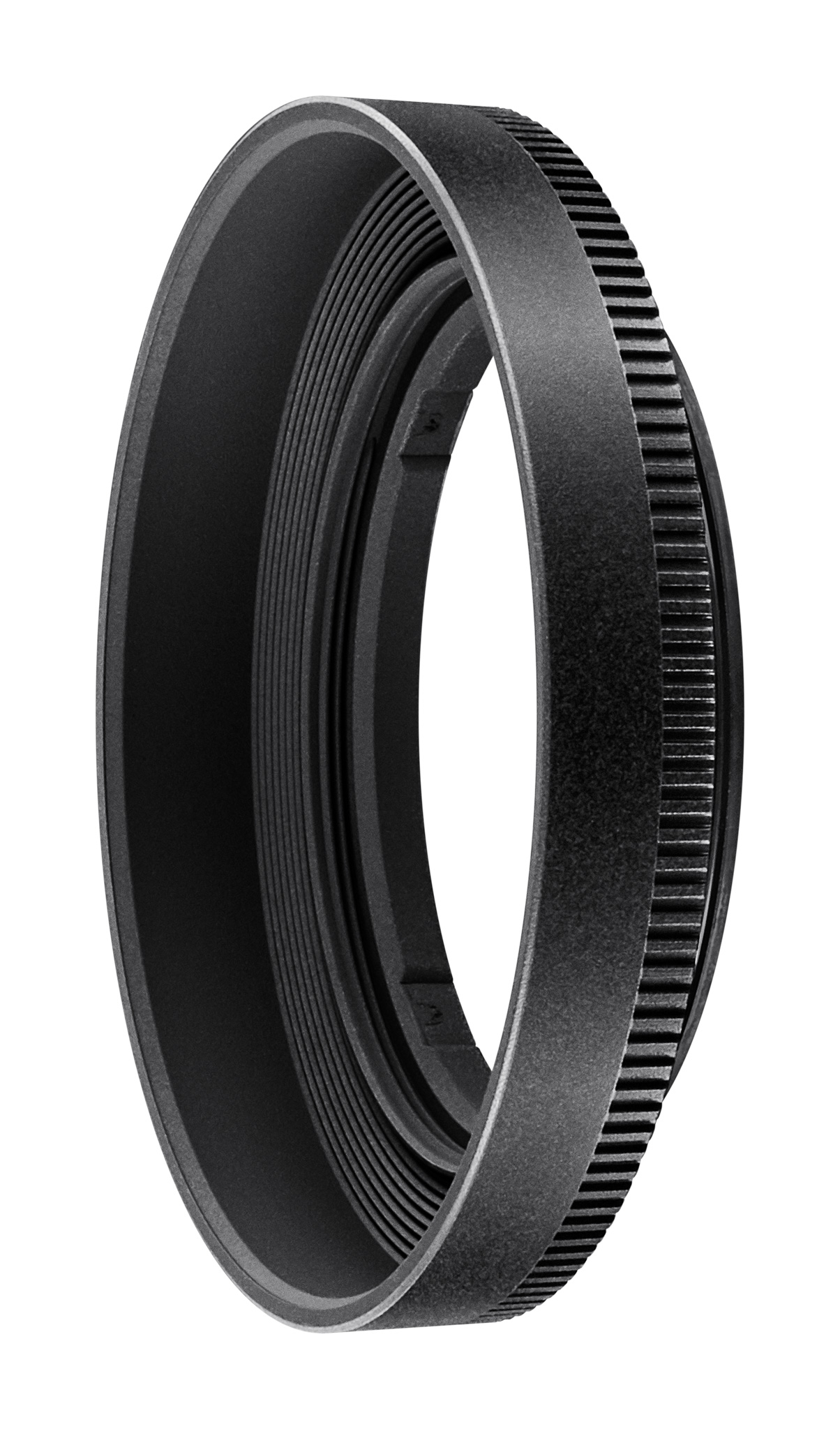 Nová bajonetová slnečná clona objektívu HB-118: súčasť balenia. Minimalizuje parazitné svetlo a obmedzuje výskyt závoja.