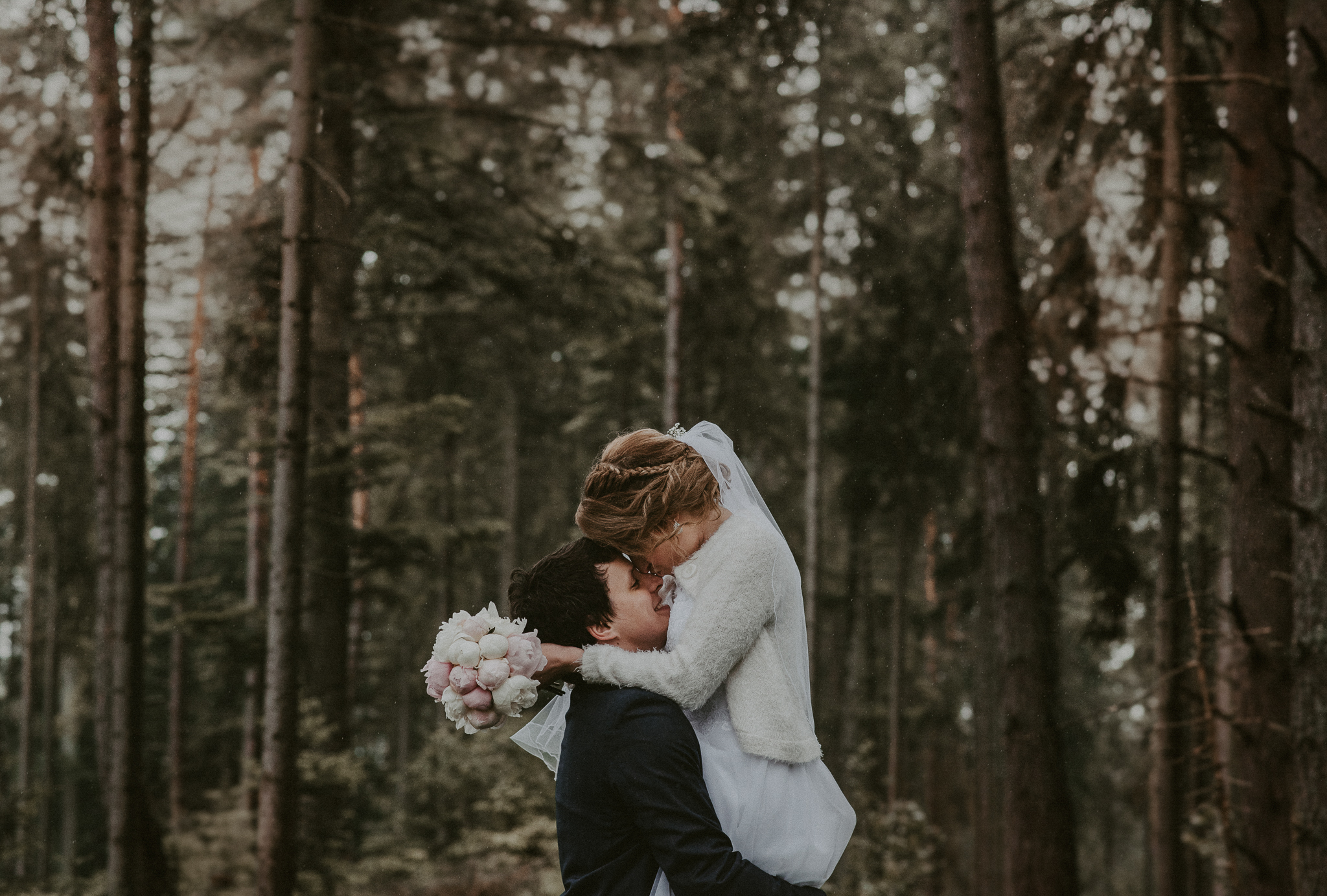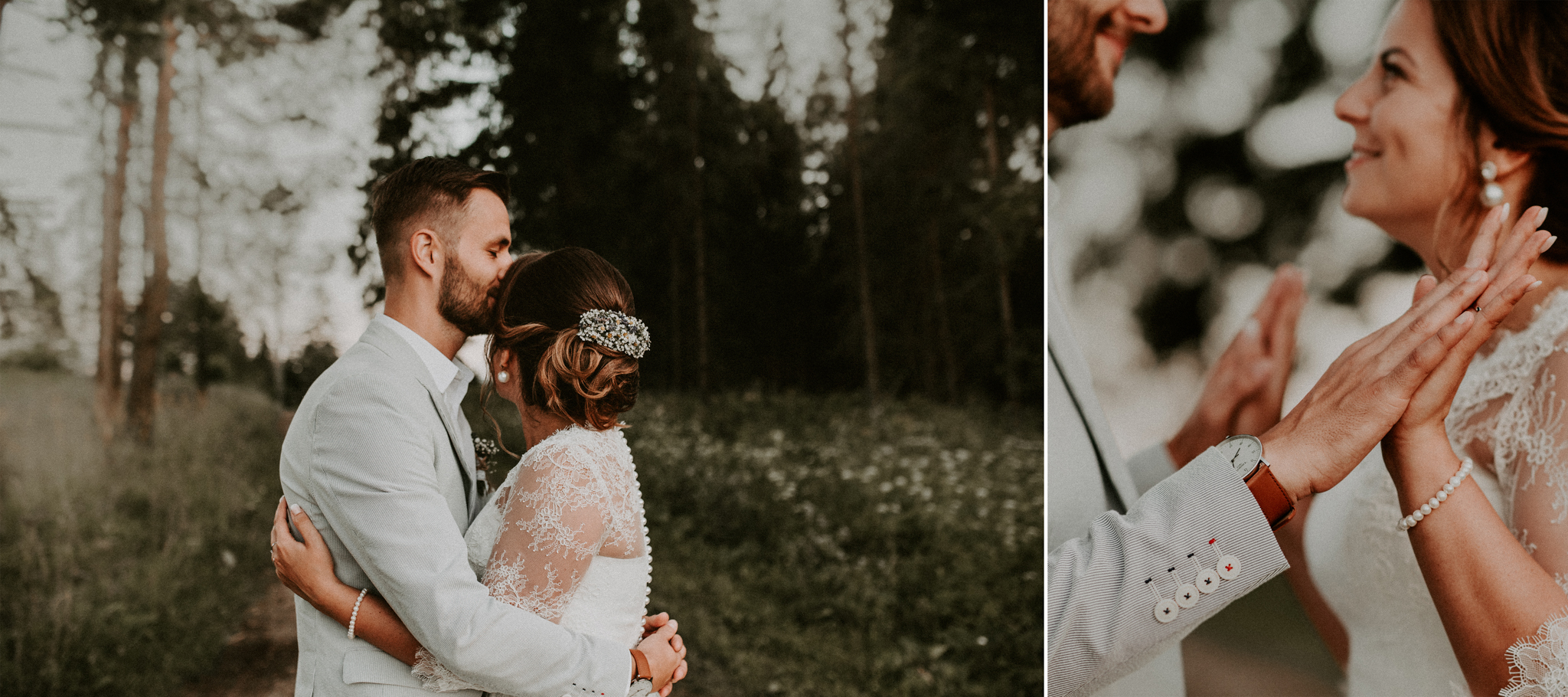 Napr. pri fotení páru, alebo všeobecne ľudí, sa snažím čo najmenej zasahovať, aby to bolo celé o nich, o ich prepojení. To ako sa ľúbia. Ich intímnosť. Jednoduchosť. Spontánnosť. Nič umelé. Avšak niekedy je potrebné usmerniť a dotvoriť do detailov, do malinkých, ktoré dokreslia ešte viac obraz… Fotím tak, aby si ma ani nevšímali, že som tam. Stále sa to učím. 🙂 Rekvizity netreba žiadne 🙂 nájdu sa stále nejaké po ceste (paprade, konáre, kvety, zvieratá 😀 …) Len túžim vyrozprávať príbeh medzi nimi.