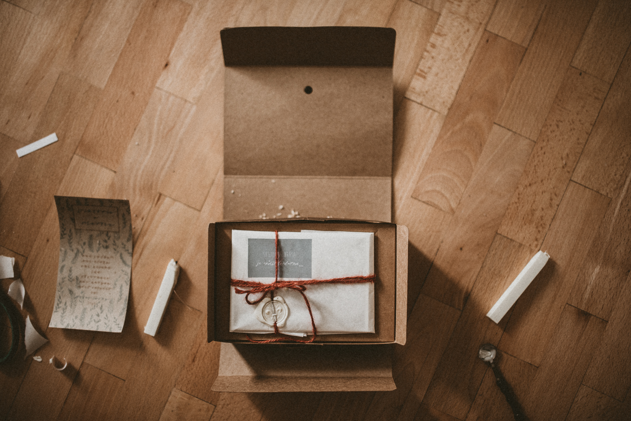 Každý dostáva originálny balík či krabičku. Každý je iný. Ani jeden nebol ešte rovnaký. Pri odovzdávaní sa stále akosi vyhrám. A niečo nové dotvorím, či grafikou alebo nejakou inou drobnosťou. Jednoduché a krásne USB v sklenenej fľaštičke, vytlačené fotografie, nájdu aj piliny :D, čačinu 😀 Malinké odkazy. A ešte poďakovanie, za to, že som mohla byť s nimi. Niekedy sa tam objaví aj DVD, alebo veľká fotografia A4/A3. Všetko balím do recyklovaného papiera, papierových tašiek, používam špagát, vosk na odtlačok pečate…