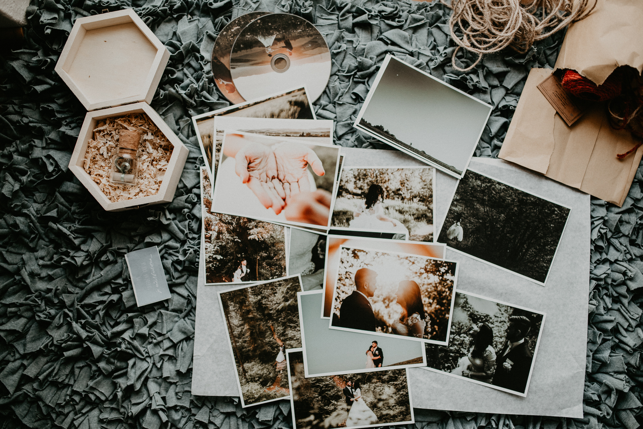 Všimol som si, že svoju prácu odovzdávaš klientom okrem digitálnej podoby aj vo forme nápaditých balíčkov. Čo všetko dokážeš do takého balíčka pre mladomanželov schovať?