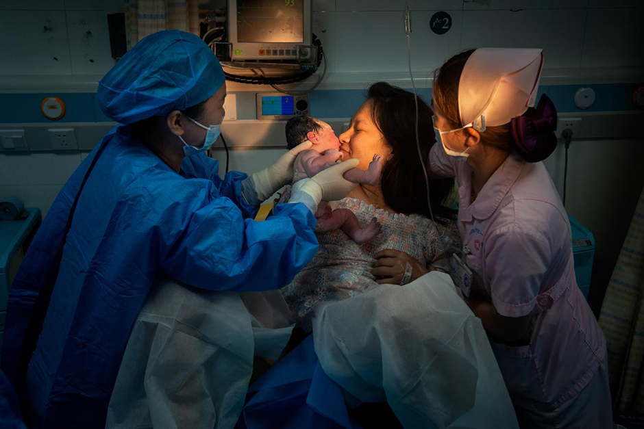 Pôrod je jednou z najväčších a najbolestivejších výziev, akým môže človek čeliť. Ukazuje úsilie, ktoré matky vynakladajú, aby priviedli na svet nový život, a čistú radosť, ktorá s tým súvisí. Fotografie zachytávajú všetkých, ktorí sa na pôrode podieľajú. Táto fáza je plná horkosti a trpkosti, bolesti, radosti, krvi a sĺz, potu, očakávaní, prekvapení, dojímavých príbehov a vzrušujúcich scén
