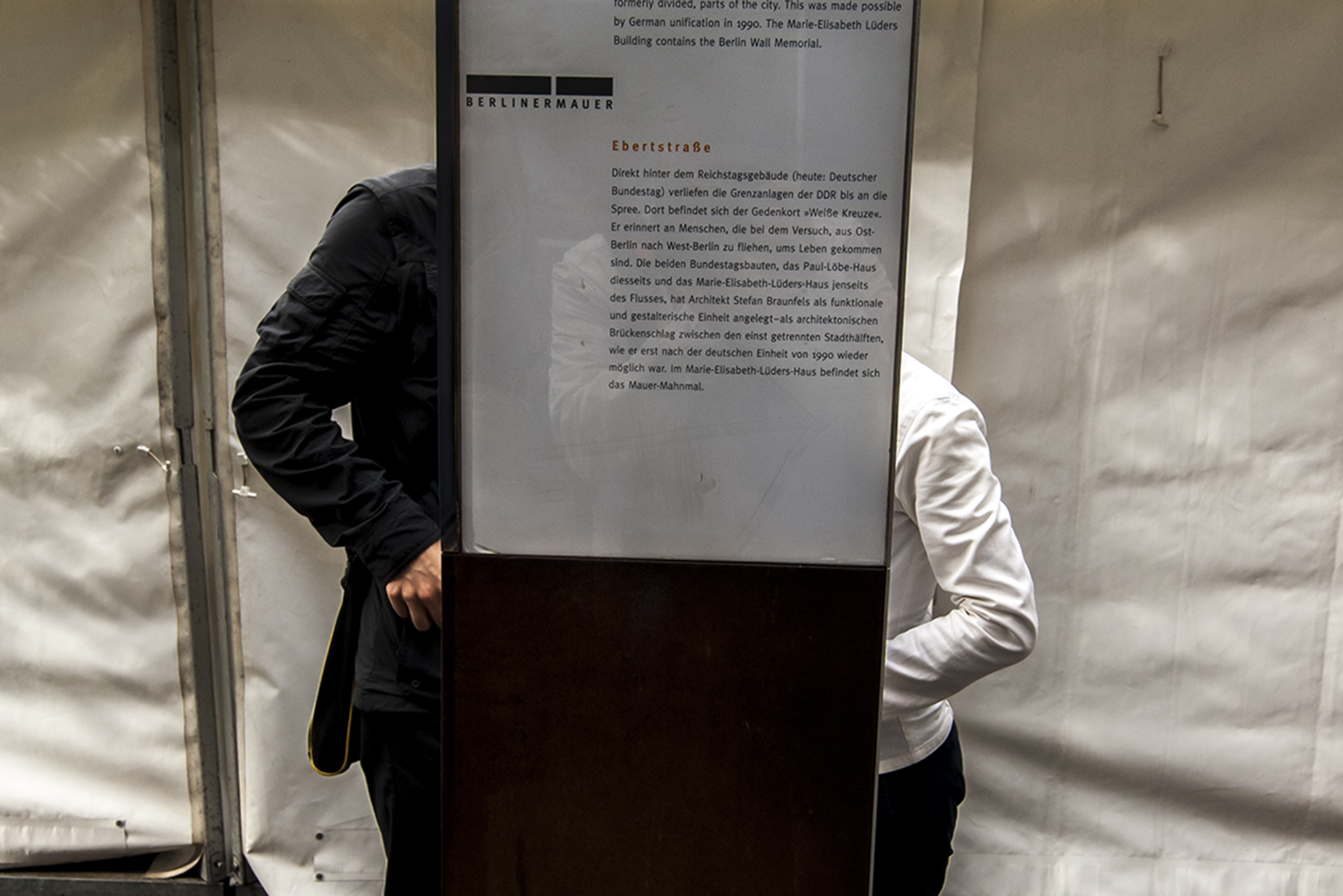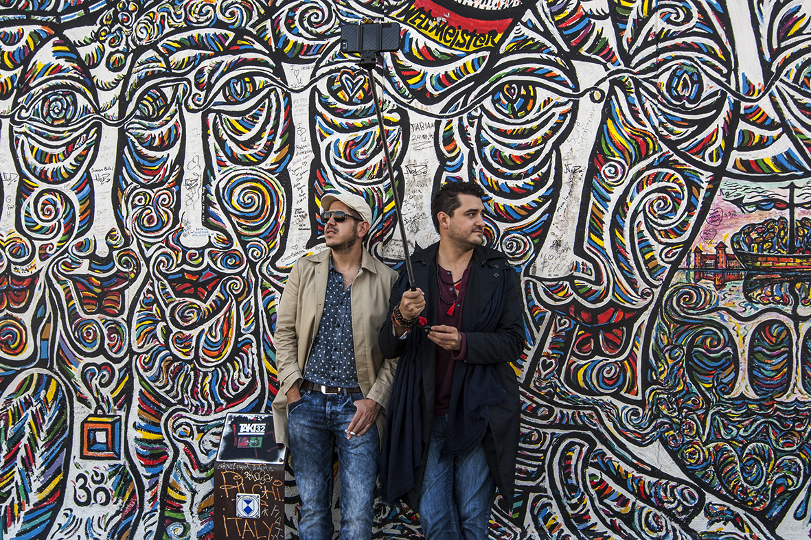 Fotografie The Berlin Wall 1 krásně ukazuje současnou „selfietyčovou úchylku“ fotomobilistů, zvláštní však na ní je, že se ani jeden z mužů nedívá do objektivu smartphonu. Diváka to nutí přemýšlet: Byl to snad záměr? Chtěli se ti dva vyfotit s „nezúčastněným“ výrazem? Nebo se k focení teprve chystají či právě skončilo?