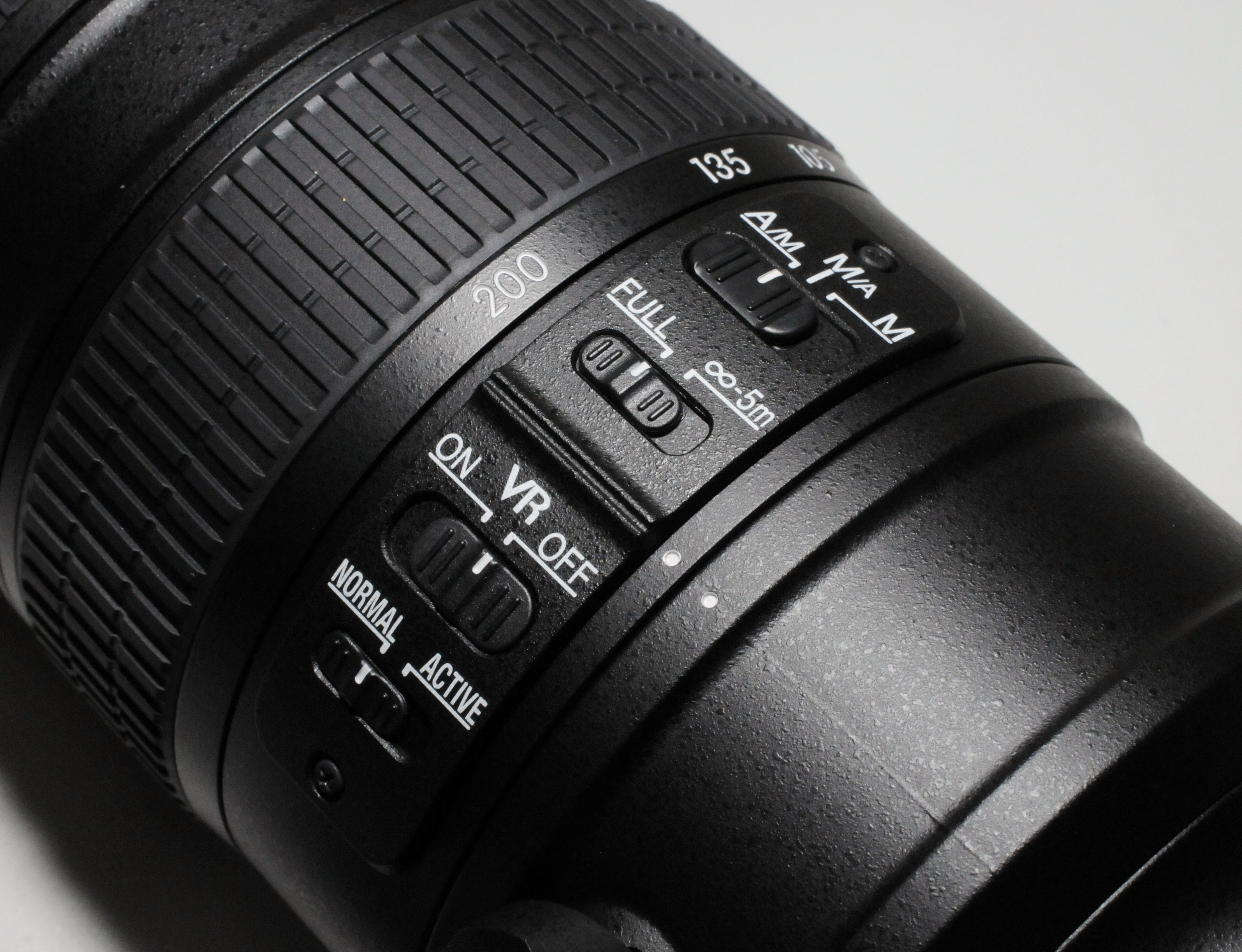 Okrem prepínača spôsobu zaostrovania nájdete na objektíve limitér, ktorý obmedzí rozsah zaostrenia zo štandardného 1,4m – nekonečno na rozsah 5m – až nekonečno. Spôsobí to ďalšie zrýchlenie už i tak bleskového zaostrovania. Viac o tom v časti fotografovanie. Posledné dva ovládače patria stabilizátoru obrazu. Ten je optický, čiže pohyb optického člena koriguje nechcené chvenie objektívu a umožňuje bez statívu vyhotoviť ostré fotografie aj s dlhšími časmi závierky. Prvý ovládač zapína a vypína stabilizátor obrazu, druhý určuje režim – buď štandardný alebo aktívny. Štandardný použite, ak chcete vyfotografovať statický objekt a vy ako fotograf ste v pokoji. Aktívny sa používa pri sledovaní sa pohybujúcich sa objektov, napríklad pri športe. Neďaleko od kovového bajonetu nájdete statívovú obruč s pätkou na uchytenie statívu. Pätka sa dá jednoducho demontovať, obruč nie. Tá je ale integrovaná do povrchu objektívu a nijako nezavadzia. Navyše po demontovaní pätky sa ukáže ďalší statívový závit, pomocou ktorého stále môžete objektív upevniť na statív. Obruč má poistku proti rotovaniu vo forme skrutky. Tá je vyladená veľmi citlivo a presne. Stačí jemne pootočiť prstami a obruč je aretovaná, opäť jemne pootočiť a obruč rotuje. Toto je vynikajúca pomôcka, ak máte objektív pripevnený na statíve a chcete fotografovať na výšku. Nemusíte sklápať hlavu statívu, jednoducho uvoľnite obruč a celý objektív aj s fotoaparátom vyrotujete o 90 stupňov a je to. Pre čo najjednoduchšie a najrýchlejšie používanie sú na objektíve i obruči korešpondujúce značky každých 90 stupňov. Objektív má samozrejme okienko so zaostrovacími vzdialenosťami v metroch aj stopách. Dodávaná slnečná clona je plastová s kovovou poistkou. Objektív sa dodáva aj s ňou a v peknom nylonovom puzdre s remeňom na prenášanie. Dojmy z tohto profesionálne spracovaného objektívu sú jednoznačné. Ide o celokovový objektív určený na hardcore používanie 24/7. Voči spracovaniu nemám nijaké výhrady. Páčilo by sa mi, keby som nemusel každé dva roky meniť gumové polepy, ale s vedomím, že ide o eko lepidlo som sa s tým zmieril.