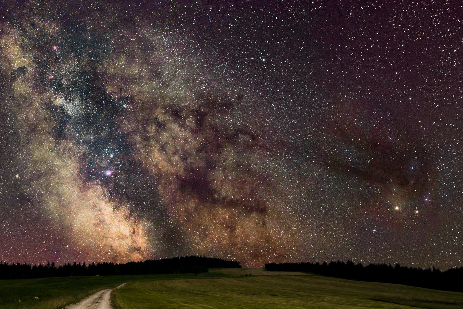 Stred našej galaxie a hlava škorpióna. Táto oblasť je doslova preplnená hmlovinami a hviezdokopami. Nachádza sa tu snáď polovica Messierovho katalógu. Problém je, že je skoro nemožné túto oblasť vyfotografovať. Nad horizizont vystúpa iba v lete, ale vtedy sú priliš krátke noci a navyše je potrebné fotografovať tesne nad horizontom, kde je to najhoršie svetelné znečistenie... Táto fotografia ma stála 4 roky snaženia a kvantum prebdelých nocí. Mal som obrovské šťastie na počasie a kvalitnú tmavú oblohu. Takže snímok sa stáva rodinným striebrom. Čo to o mieste a podmienkach som naznačil pod fotografiou © Richard Černohorský