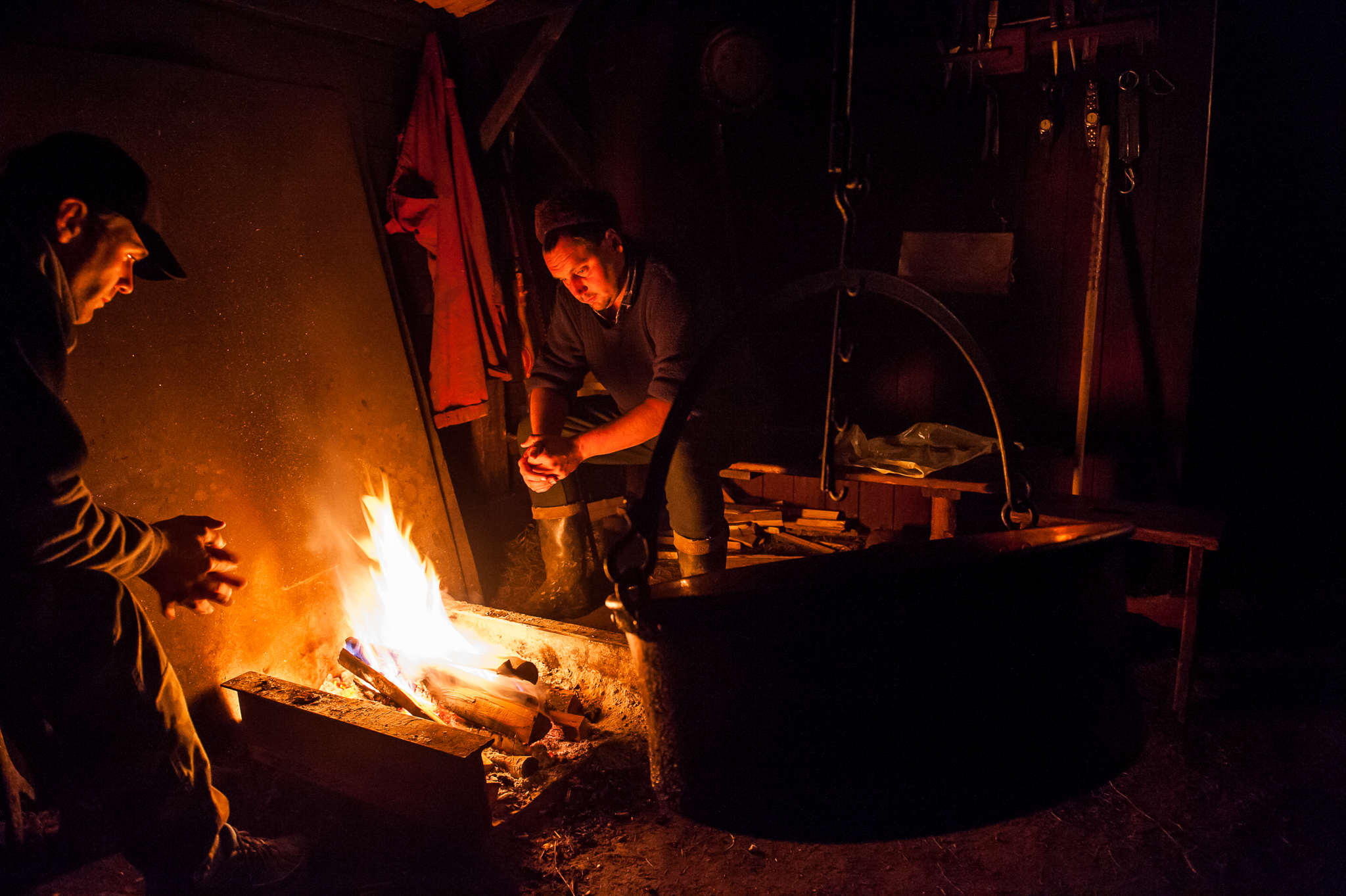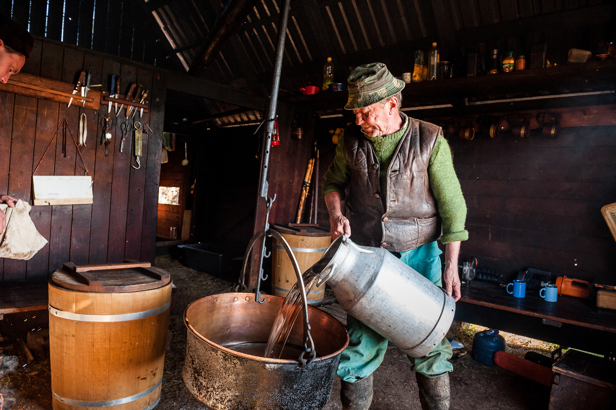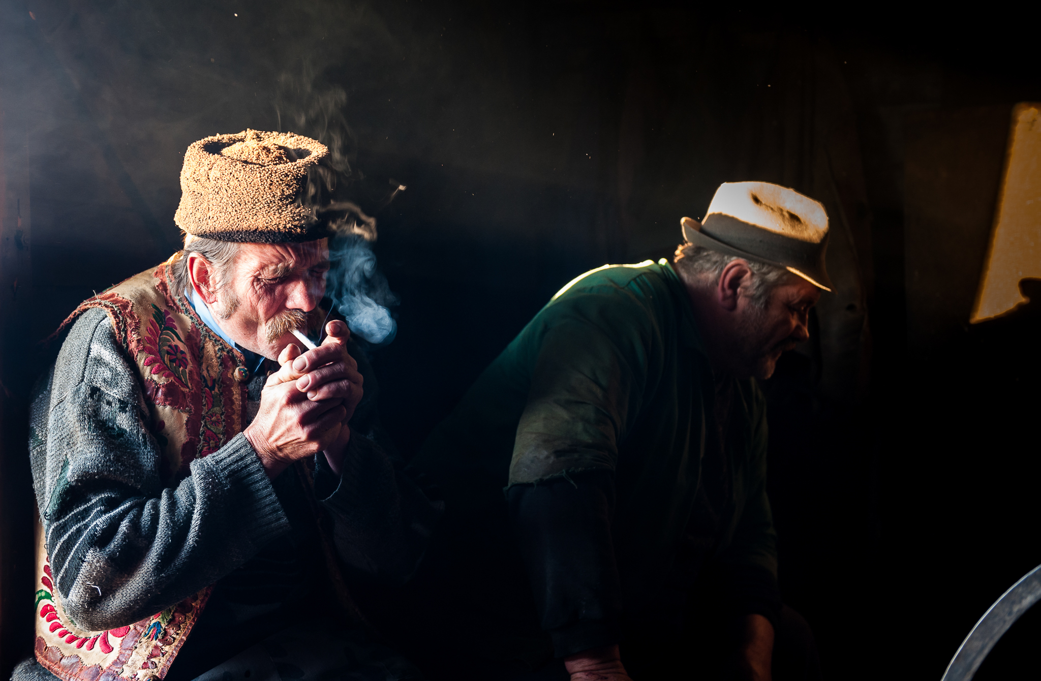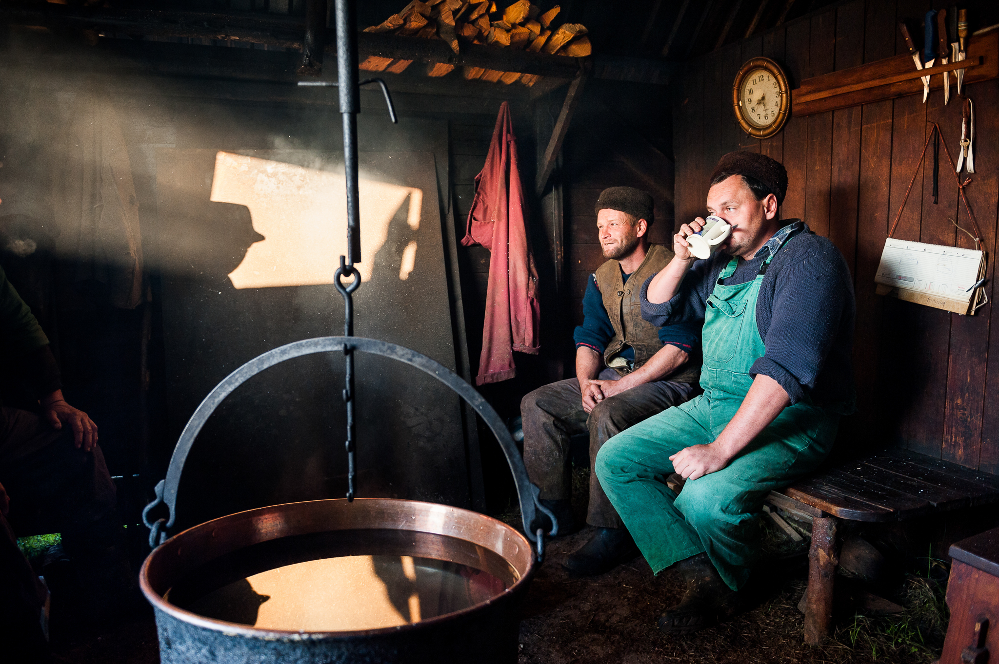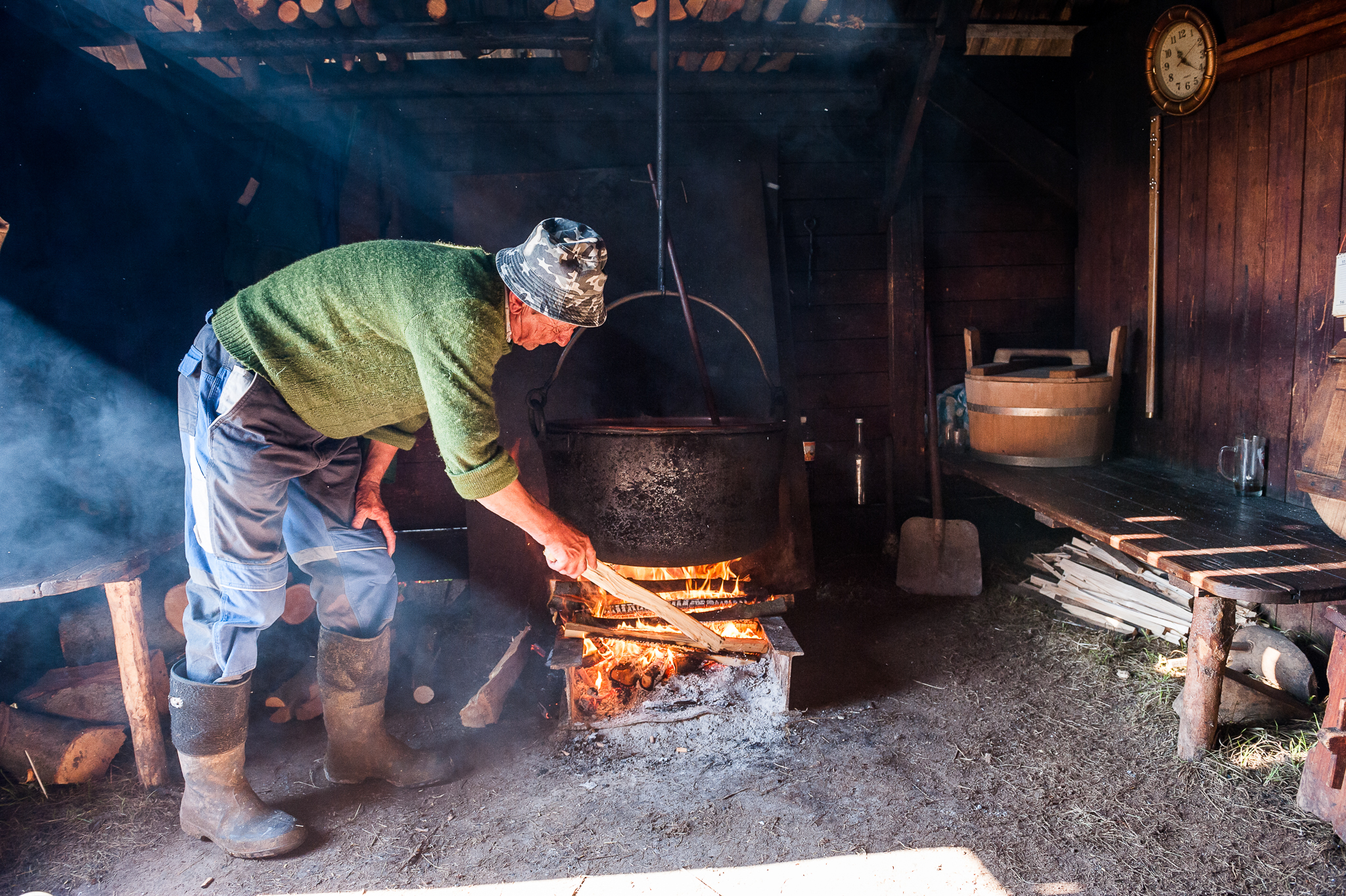 Peter má dnes službu. Vstáva ešte potme, rozkladá oheň v bačovni a varí čaj alebo kávu podľa včerajšieho želania baču a ostatných honelníkov. Chcel by som ho pritom nafotiť, ale po noci plnej príbehov akosi nevládzem. Ostýchavé jazyky rozviazané páleným mi ešte stále znejú v ušiach. Roztrasené hlasy od dojatia z osudov vlastných i svojich bratov na salaši… Veru, zišli sa tu chlapi s neľahkým životom tam dolu medzi ľuďmi. Tu však ich oči žiaria do blízkej pahreby i do nekonečných hviezd. Na ťažký život ostali spomienky, ale príroda a čas všetko hojí. Som zvedavý, čo najbližších pár dní so sebou prinesie. Pred očami mám vážny výraz baču, ktorý vraví: „Nezľakni sa, keď uvidíš veci, na ktoré nie si zvyknutý. Keď uvidíš roztrhanú ovcu alebo opitého chlapa.“