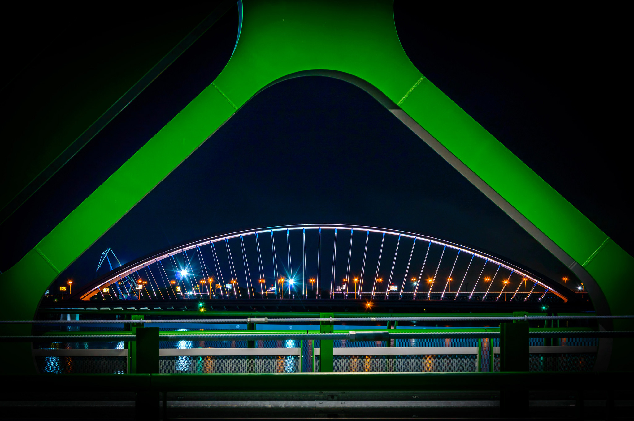 Výbornou „středovku“, taktéž pořízenou po soumraku, poslal do skupiny JSEM | Fotka měsíce Nikonblogu na Flickru také Juraj Balaz. Jeho noční snímek mostu Apolo přes Dunaj v Bratislavě, pořízený průhledem skrz konstrukci východněji ležícího Starého mostu, opět jasně ukazuje, že když se středová kompozice umí použít, není to nic proti pravidlům.
