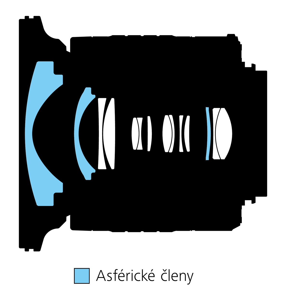 Optická konštrukcia: 14 optických členov v 11 skupinách