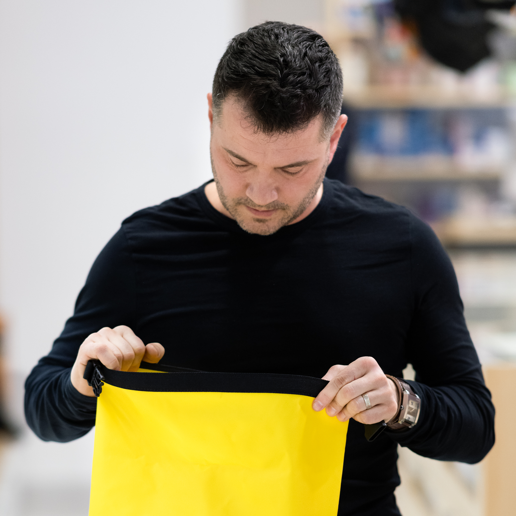 Nie je to fotoruksak v pravom zmysle, ktorý by mal polstrované prepážky či špeciálnu komoru pre uloženie techniky. Ide o jednoduchý vak, ktorý je vytvorený z nepremokavého materiálu, ktorý je dostatočne pevný a priestranný, aby ste do neho vložili menšiu fototašku a k tomu ešte prihodili náhradné tričko či tenkú mikinu. Všetko záleží od toho, akú rozmernú brašnu dovnútra vložíte.