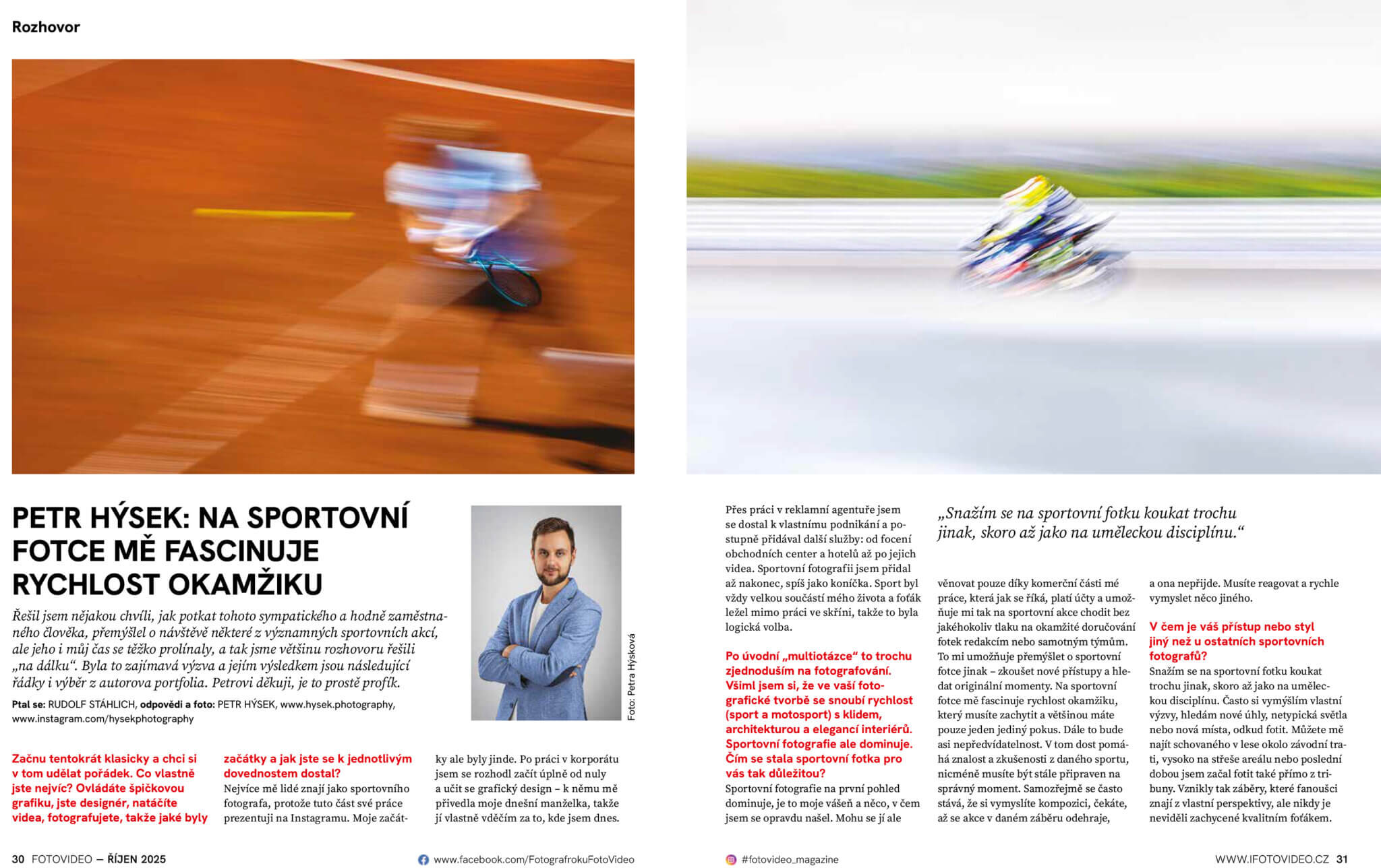 Do našeho říjnového výběru určitě patří sportovní fotografie Petra Hýska. Fotograf, který dokáže zachytit a často velmi netradičně ztvárnit okamžiky charakterizující většinu současných sportů. Rychlost vládne světu a spotu obzvlášť a klade velké nároky na ty, kteří je chtějí a umí zobrazit. Petr k nim neodmyslitelně patří.