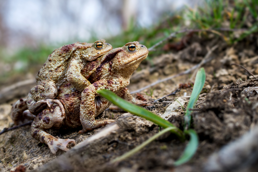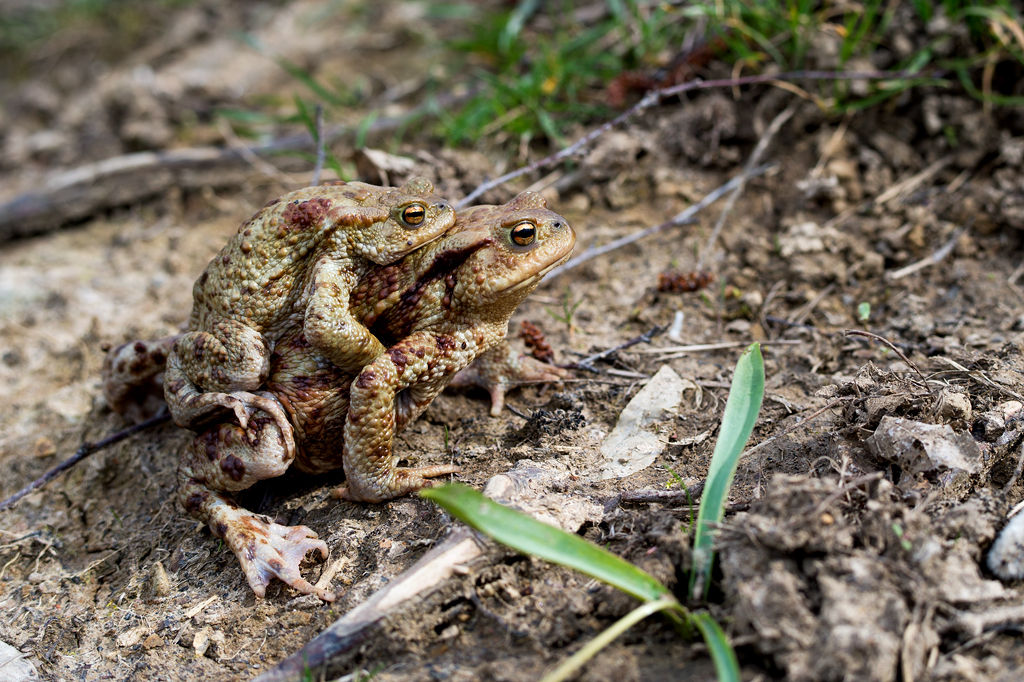 Všimnite si obrovského rozdielu medzi dvoma fotografiami žiab. Prvá je vyfotografovaná podľa pravidla z úrovne očí. Druhá je z bežného ľudského pohľadu. Vidíte rozdiel v tom, ako zvieratká vynikajú v prvom prípade a zanikajú v druhom?